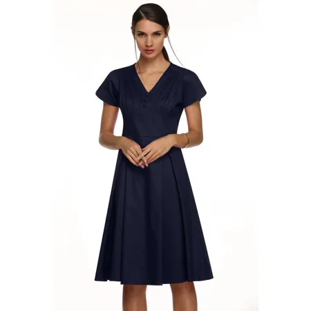 Women Fashion Sexy V-Neck Solid Vintage Style High Waist Pleated Dress100% Brand NewBrand: ACEVOGMaterial: Cotton Blend3 Colors: Red, Navy Blue, BlackCollar: V-NeckSleeve: Short SleeveStyle: SundressZipper: Back ZipperDecor: ButtonDress Length: Knee LengthPattern: SolidOccasion: Casual, PartyGarment Care: Hand-wash and Machine washable, Dry CleanPackage Content: 1 x Women DressNote: As different computers display colors differently, the color of the actual item may vary slightly from the above images, thanks for your understanding.