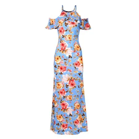 FashionOutfit Women’s Affordable Beach Wedding Guest Floral Cold Shoulder Maxi Dress Made in USA