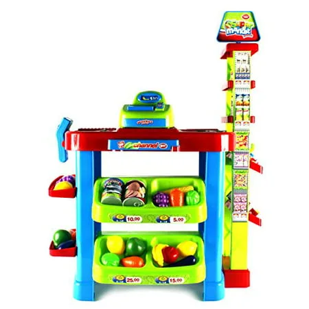 Fun Super Market Pretend Play Toy Market Play Set, Working Scanner with Light and Sound!Comes with Toy Cash Register, Shopping Cart, Pretend Food and Money!Includes Various Fruits, Vegetables, Groceries, etc! Package Includes: Fun Super Market Pretend Play Toy Market Play Set